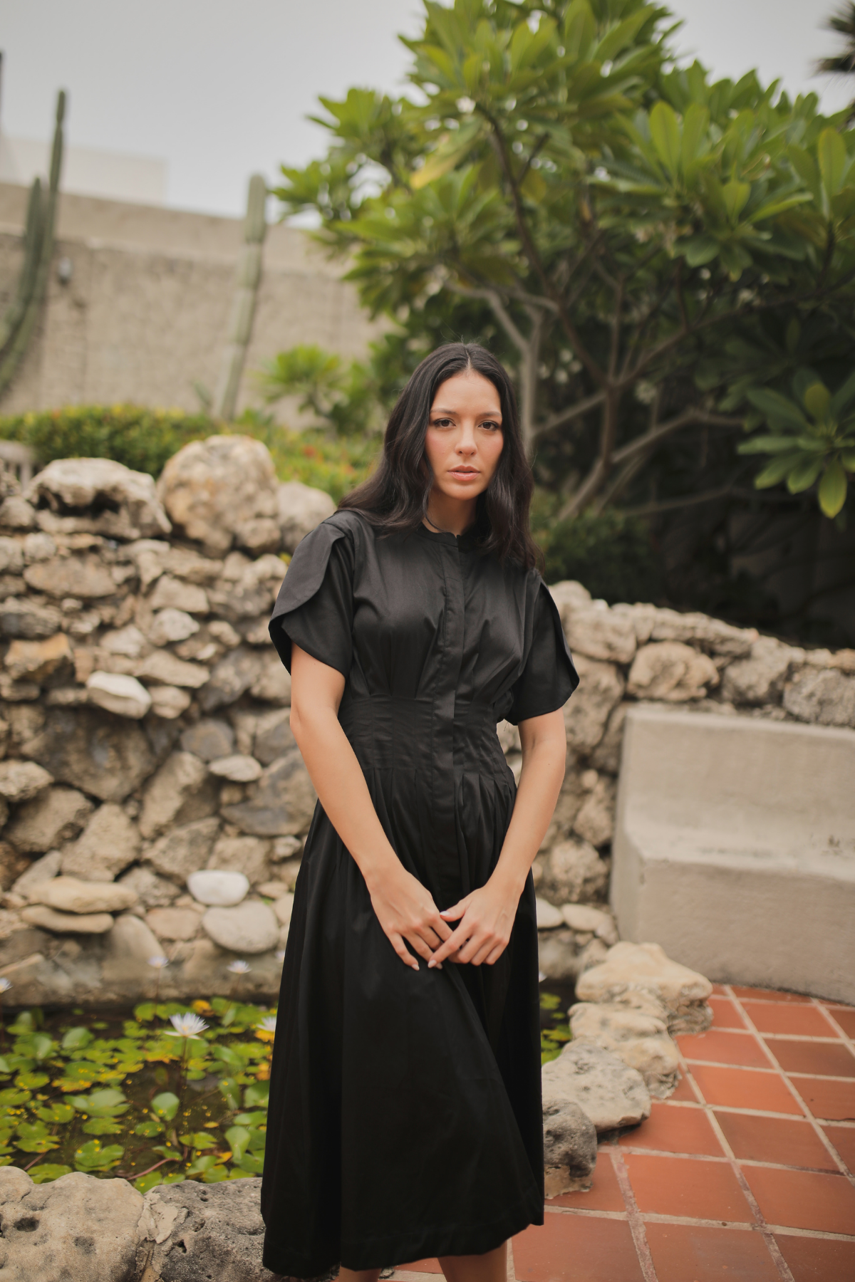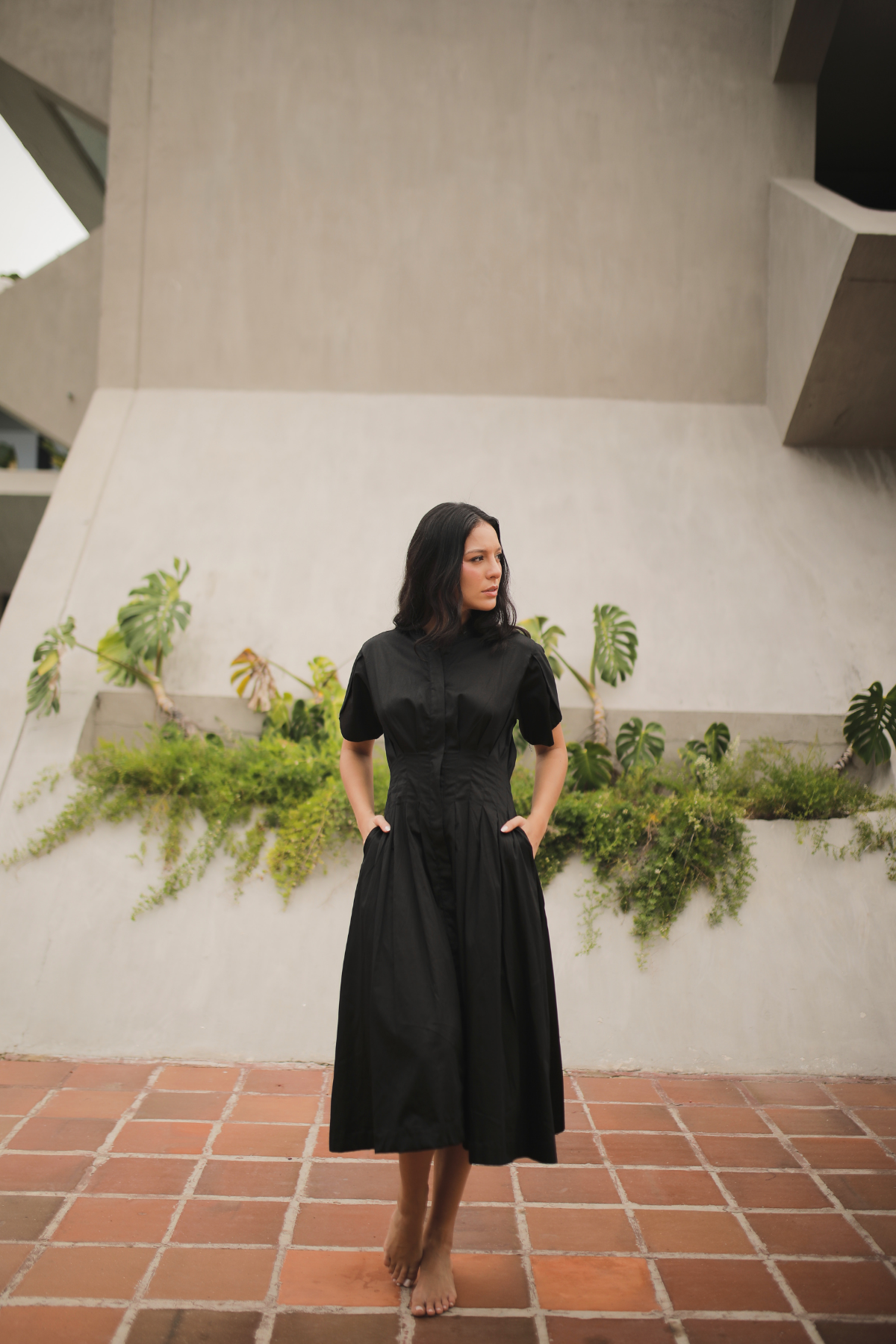 Vestido camisero de cuello redondo con botonadura oculta, un diseño limpio y minimalista. Presenta mangas tipo tulipán que aportan un toque femenino y una silueta semi ajustada que estiliza sin perder comodidad. Cuenta con bolsillos funcionales laterales que aportan practicidad sin restar elegancia. Confeccionado en popelina satinada, es ideal para un look moderno y casual con acabado sofisticado.